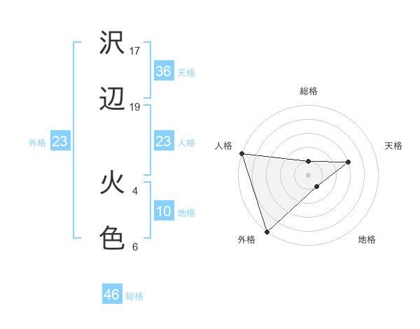 沢辺 火色さんを姓名の画数から五運を鑑定