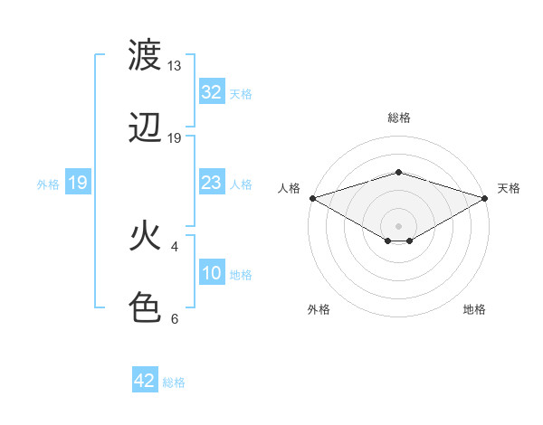 渡辺 火色さんの外格は19画の1点!