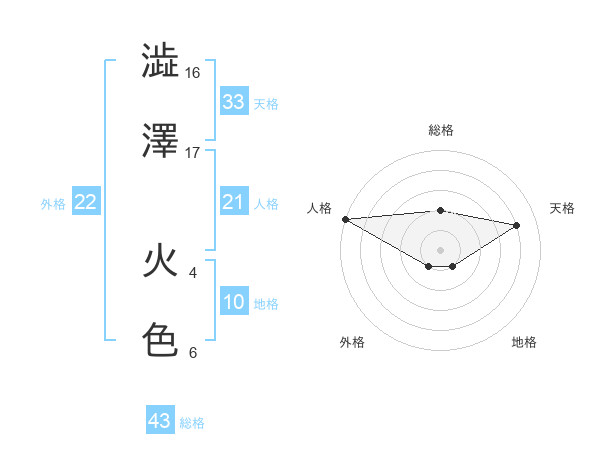 澁澤 火色さんの総格は43画の2点!