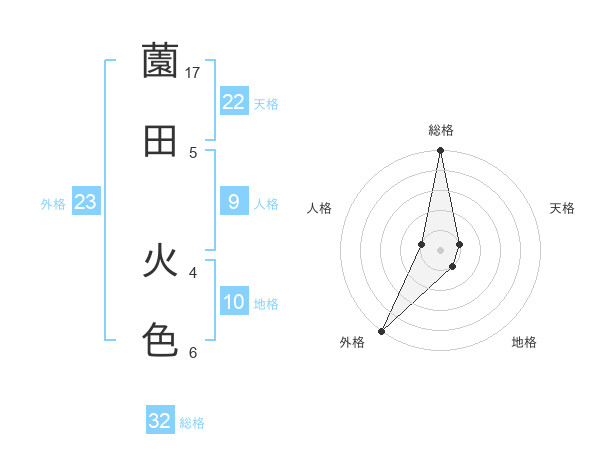 薗田 火色さんの総格は32画の5点!