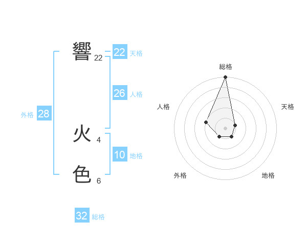 響 火色さんの総格は32画の5点!
