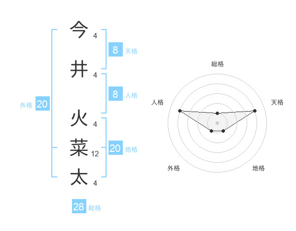 今井 火菜太さんを姓名の画数から五運を鑑定