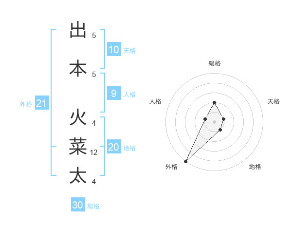 出本 火菜太さんの総格は30画の2点!