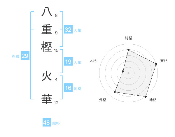 八重樫 火華さんの天格は32画の5点!