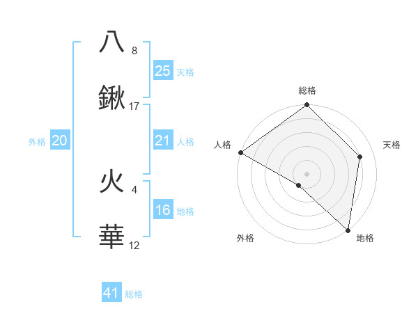 八鍬 火華さんを姓名の画数から五運を鑑定