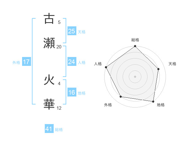 古瀬 火華さんの総格は41画の5点!