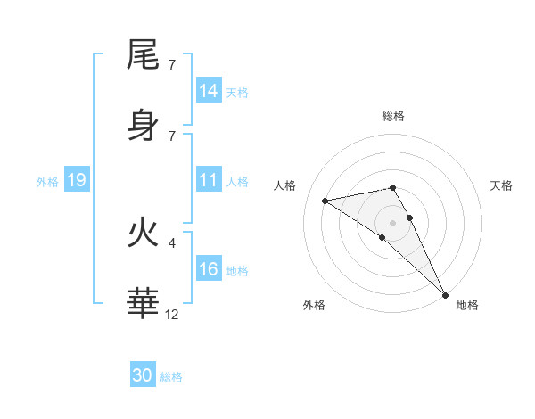 尾身 火華さんを姓名の画数から五運を鑑定