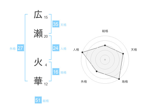 広瀬 火華さんを姓名の画数から五運を鑑定