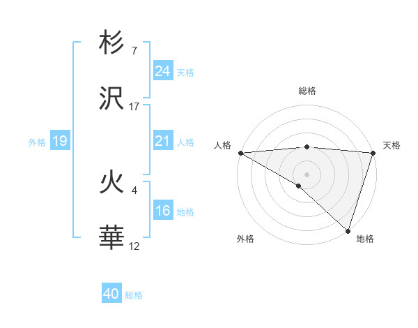 杉沢 火華さんを姓名の画数から五運を鑑定