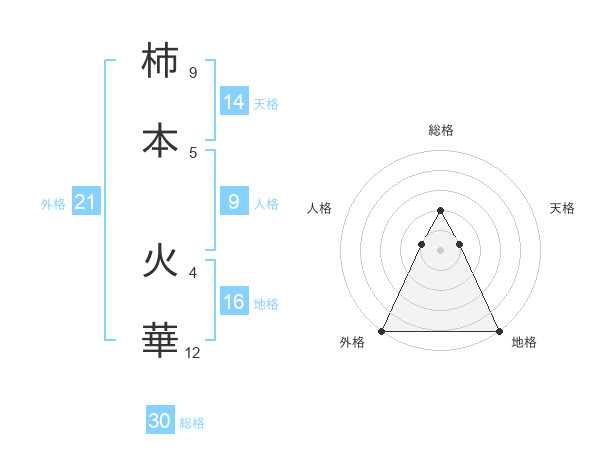柿本 火華さんの外格は21画の5点!