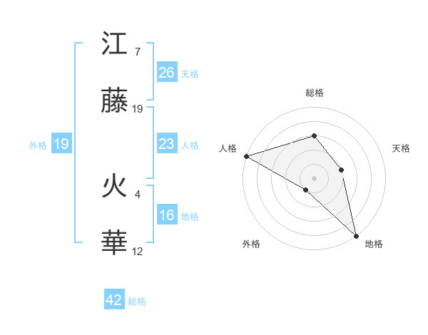 家系が持つ宿命的な運勢を表します。祖先から受け継いだ苗字ですので自分の力が及びません。家柄を象徴します。