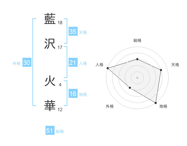 藍沢 火華さんを姓名の画数から五運を鑑定