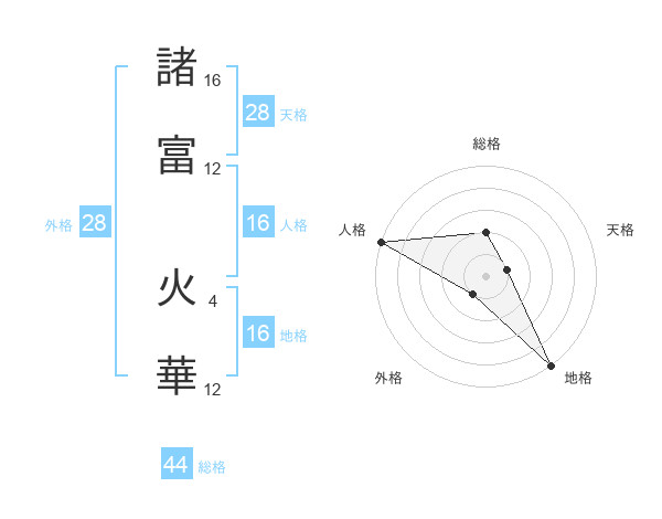 諸富 火華さんの総格は44画の2点!