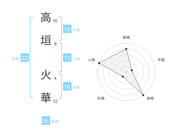高垣 火華さんの総格は35画の4点!