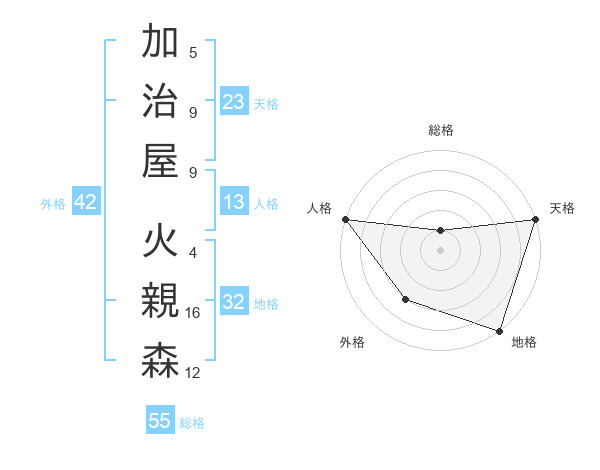 加治屋 火親森さんの総格は55画の1点