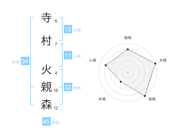 寺村 火親森さんの天格は13画の5点!