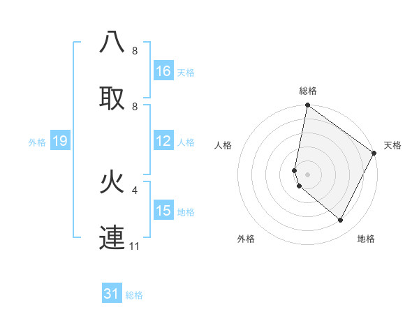 八取 火連さんの天格は16画の5点!