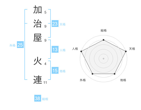 加治屋 火連さんを姓名の画数から五運を鑑定