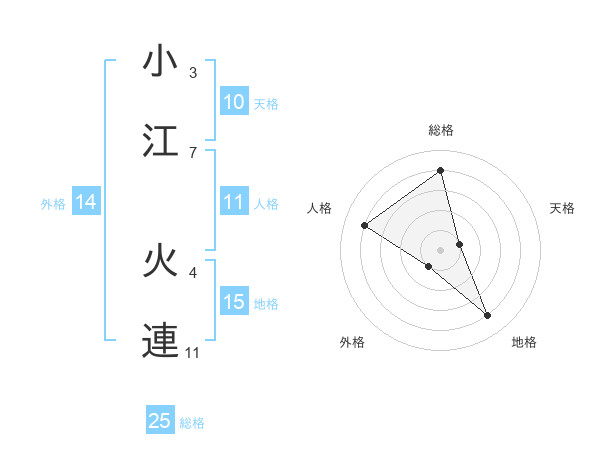 小江 火連さんを姓名の画数から五運を鑑定