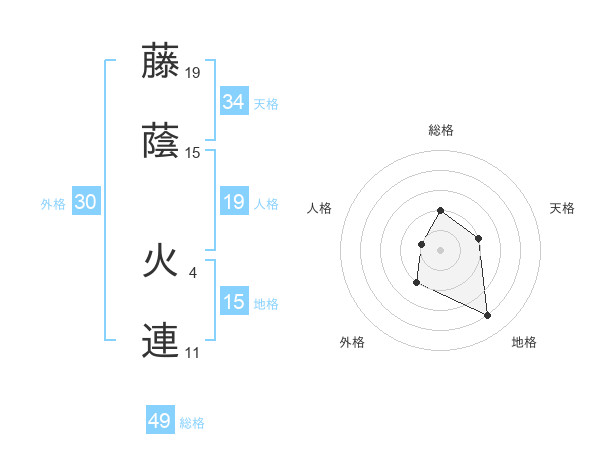 藤蔭 火連さんの総格は49画の2点!