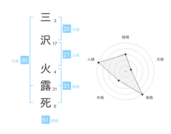 三沢 火露死さんを姓名の画数から五運を鑑定