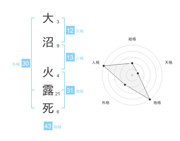 大沼 火露死さんを姓名の画数から五運を鑑定