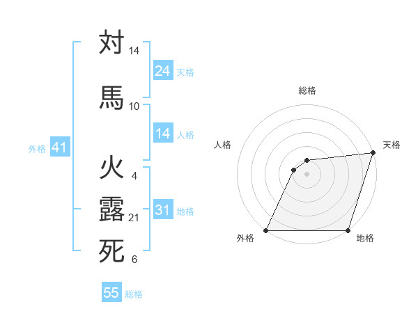 対馬 火露死さんを姓名の画数から五運を鑑定