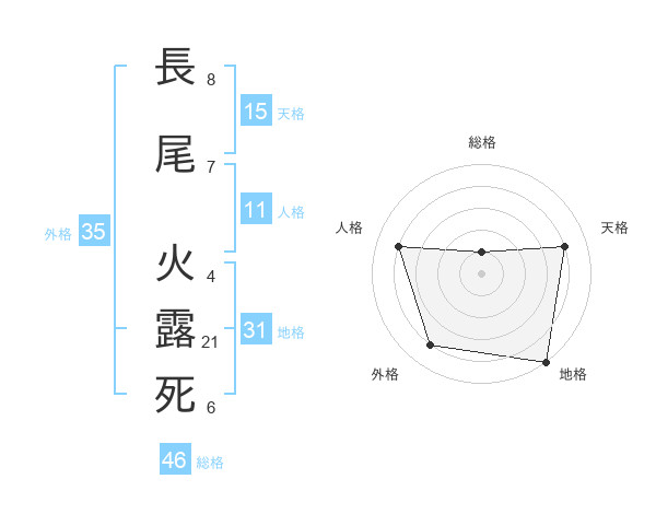 長尾 火露死さんの総格は46画の1点
