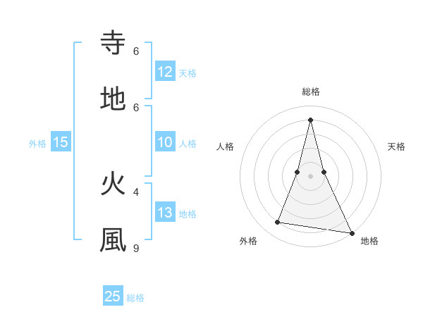 寺地 火風さんの総格は25画の4点!