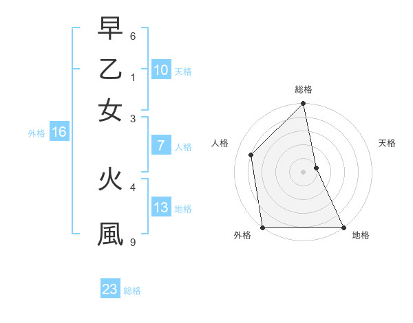 早乙女 火風さんを姓名の画数から五運を鑑定