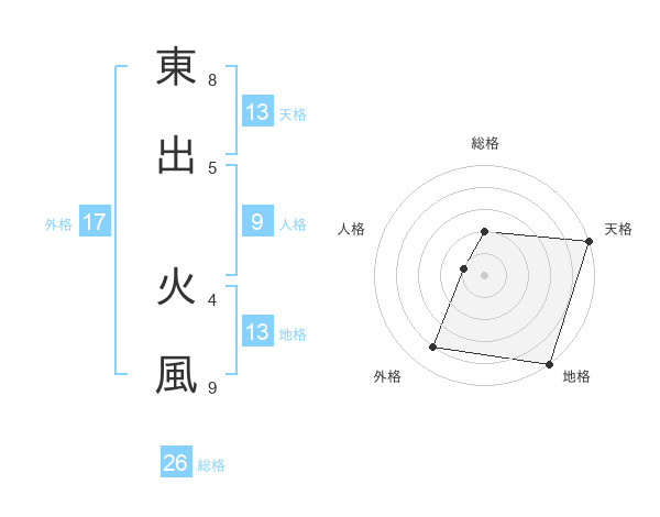 東出 火風さんの天格は13画の5点!