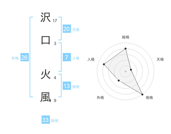 家系が持つ宿命的な運勢を表します。祖先から受け継いだ苗字ですので自分の力が及びません。家柄を象徴します。
