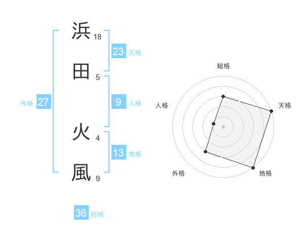 浜田 火風さんの天格は23画の5点!