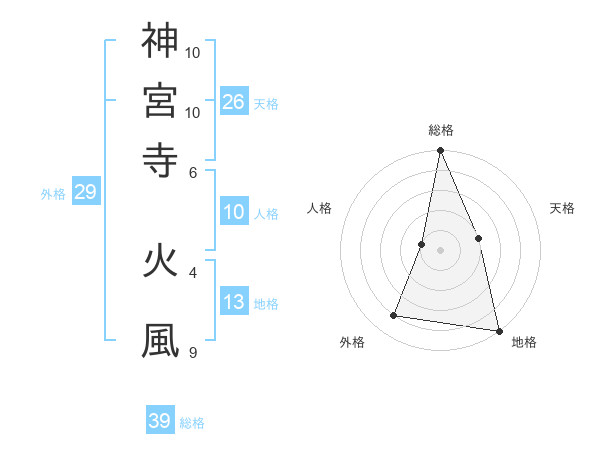 神宮寺 火風さんの総格は39画の5点!