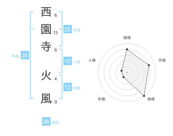 西園寺 火風さんの総格は38画の4点!