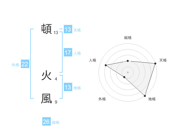 頓 火風さんの天格は13画の5点!