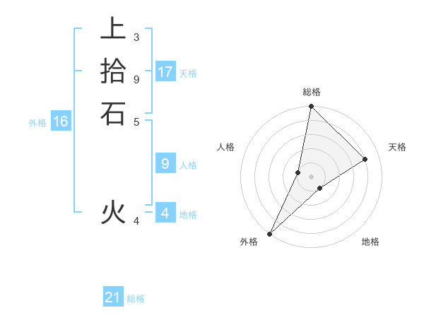 上拾石 火さんの天格は17画の4点!
