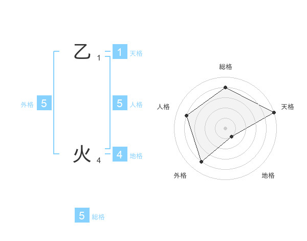 乙 火さんの総格は5画の4点!