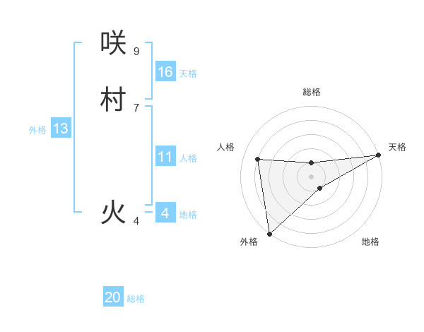 咲村 火さんの総格は20画の1点!