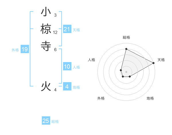 小椋寺 火さんを姓名の画数から五運を鑑定
