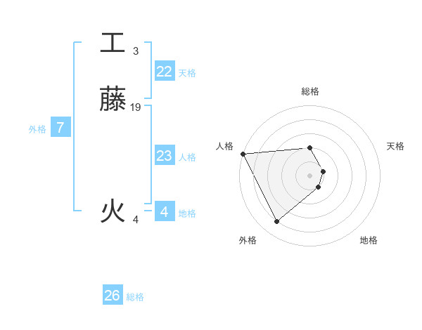 家系が持つ宿命的な運勢を表します。祖先から受け継いだ苗字ですので自分の力が及びません。家柄を象徴します。