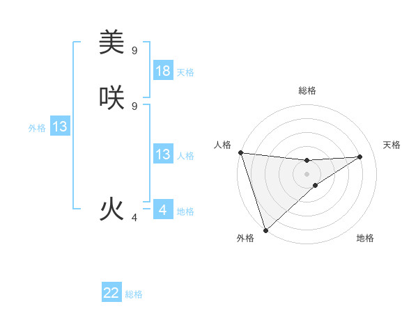美咲 火さんの外格は13画の5点!