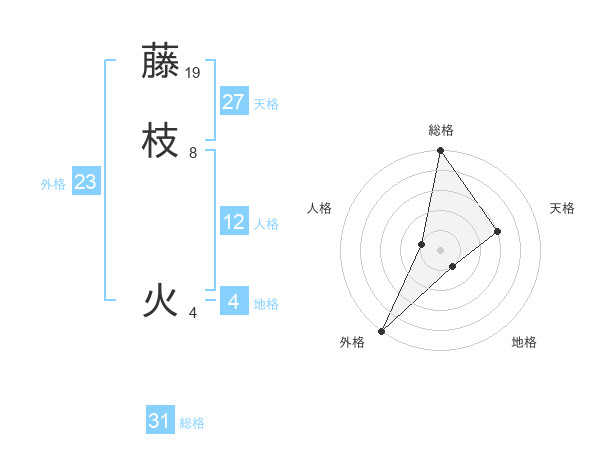 藤枝 火さんの外格は23画の5点!