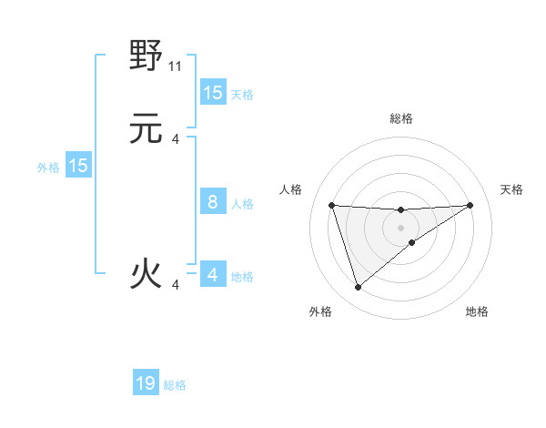 野元 火さんの外格は15画の4点!