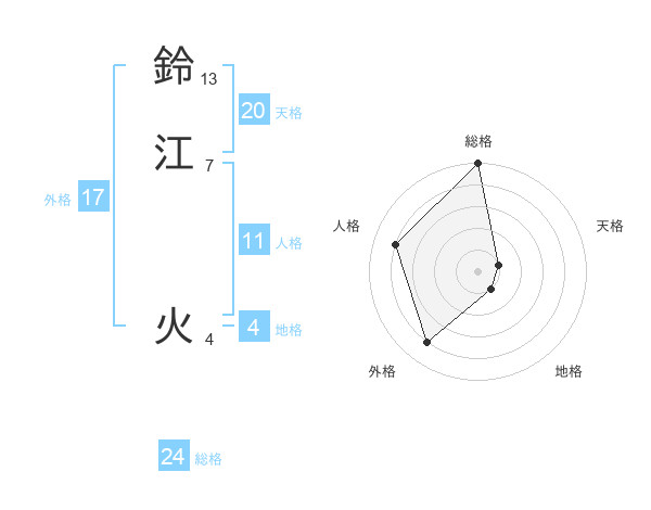 鈴江 火さんの総格は24画の5点!