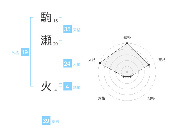 駒瀬 火さんの総格は39画の5点!