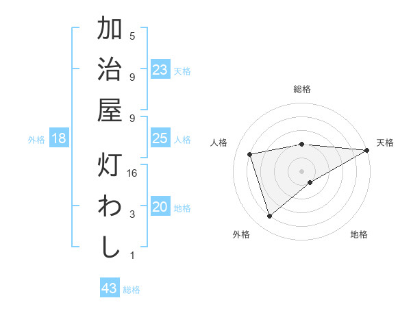 加治屋 灯わしさんを姓名の画数から五運を鑑定