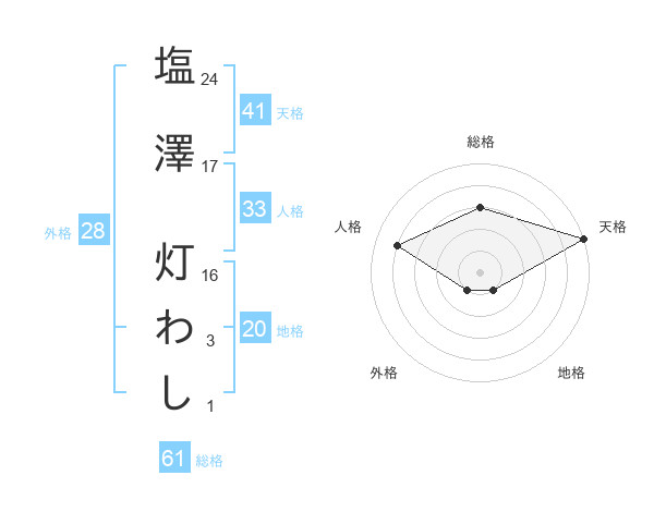 塩澤 灯わしさんを姓名の画数から五運を鑑定