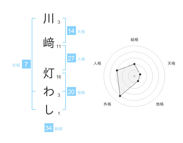 川﨑 灯わしさんを姓名の画数から五運を鑑定