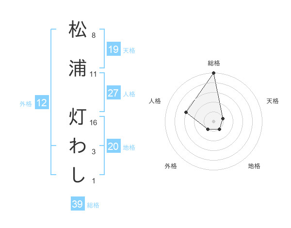 松浦 灯わしさんを姓名の画数から五運を鑑定